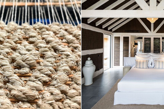 "The handwoven rug requires an innovative cork ribbon along with cotton or wool and raw linen, weaved together by the brand’s artisans in Portugal."